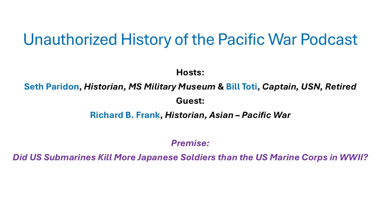 Although the premise of the source podcast and Don's presentation was to answer the question, "Did US Submarines Kill More
