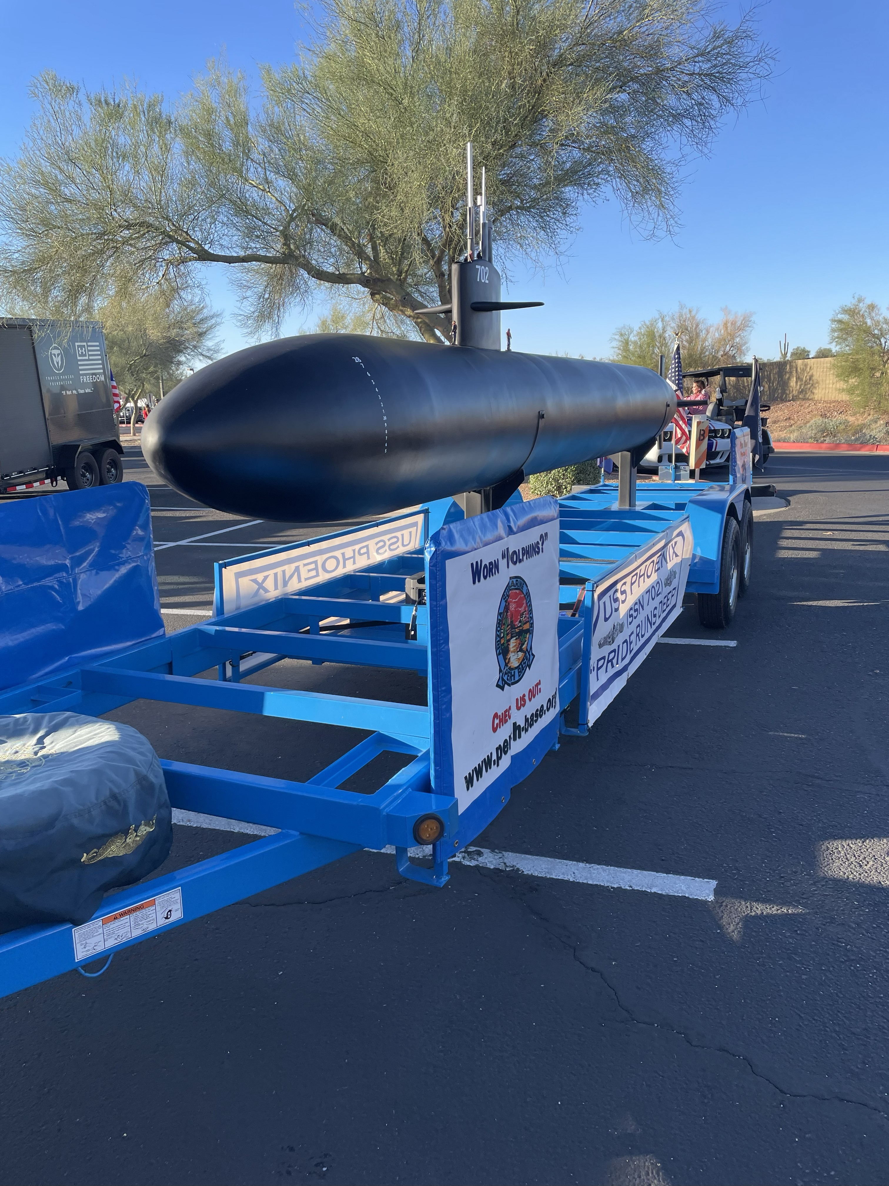 USS Phoenix float to the Daisy Mountain Veterans Day Parade in Anthem, Arizona, on Saturday, November 8, 2025.