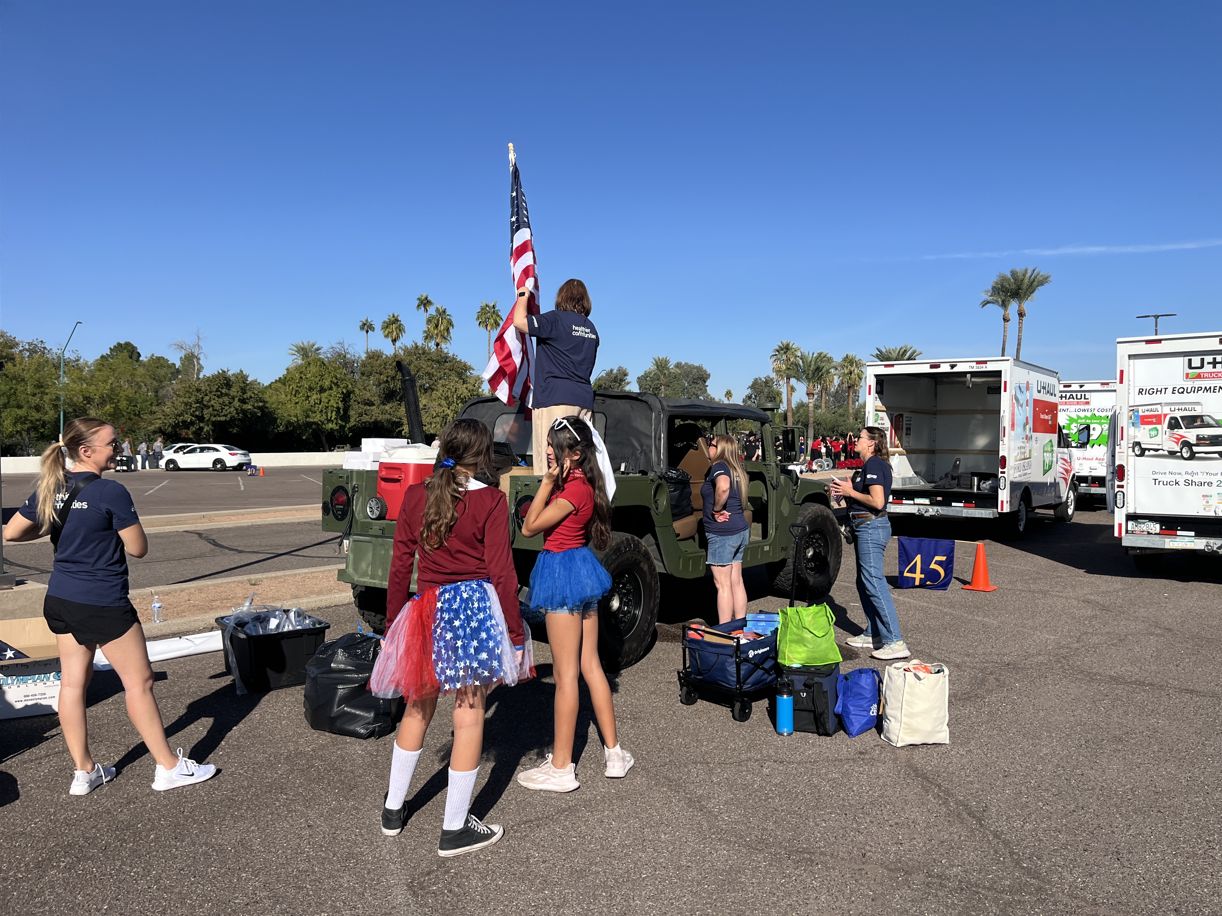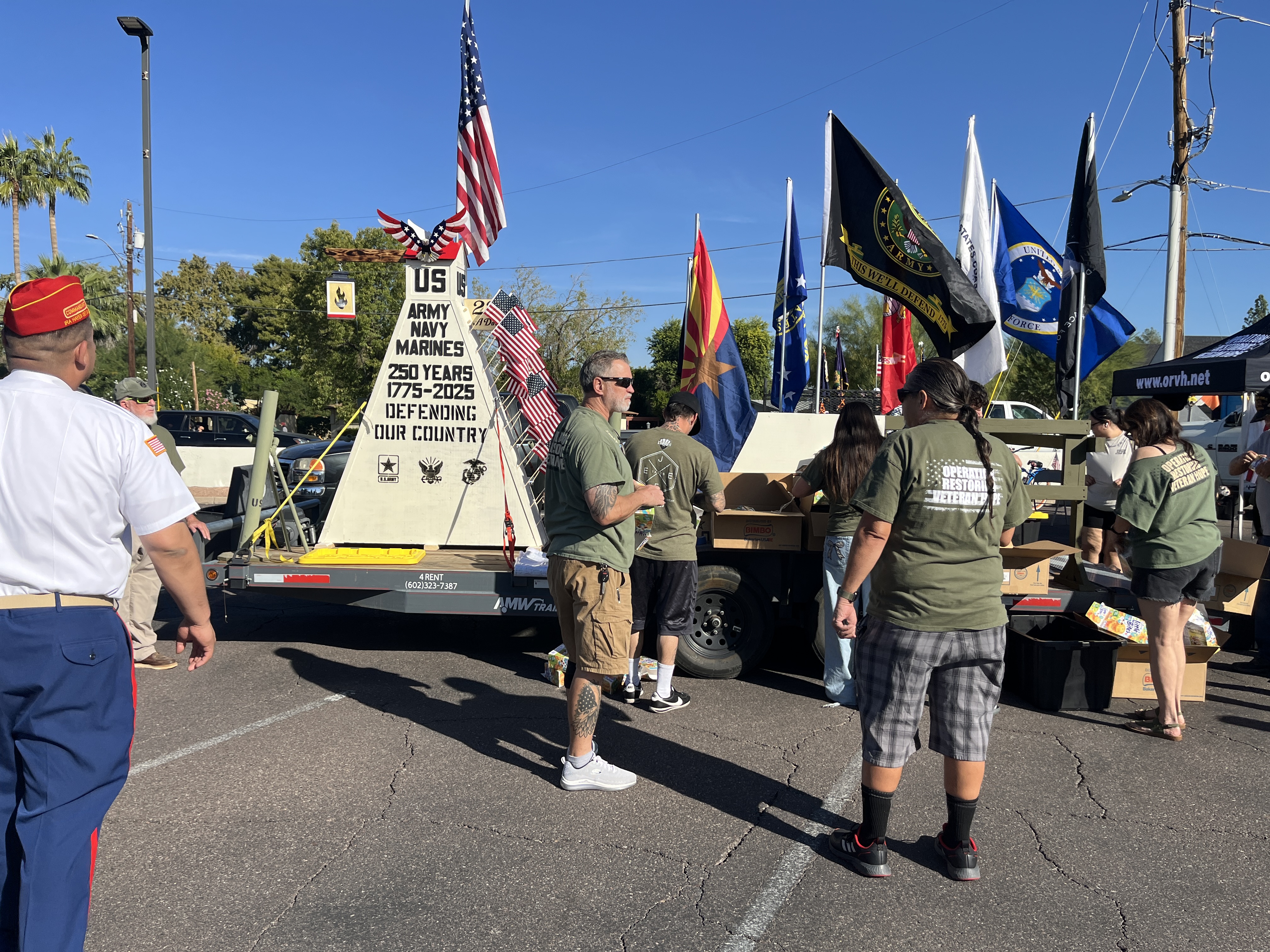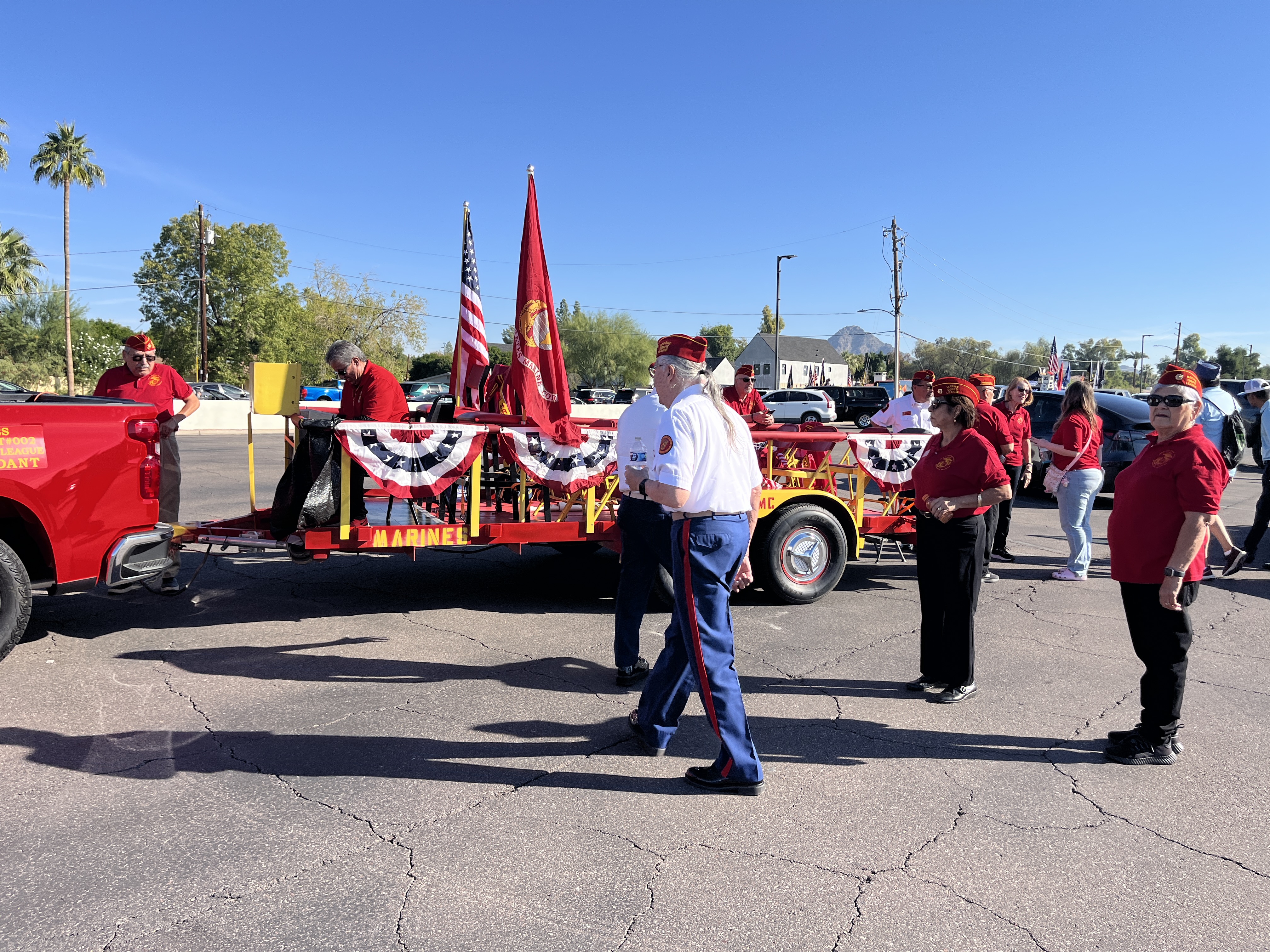 We met at 8 AM to stage the float at the Firestone Complete Auto Care at 241 W Osborn Rd. Thanks to Firestone for
