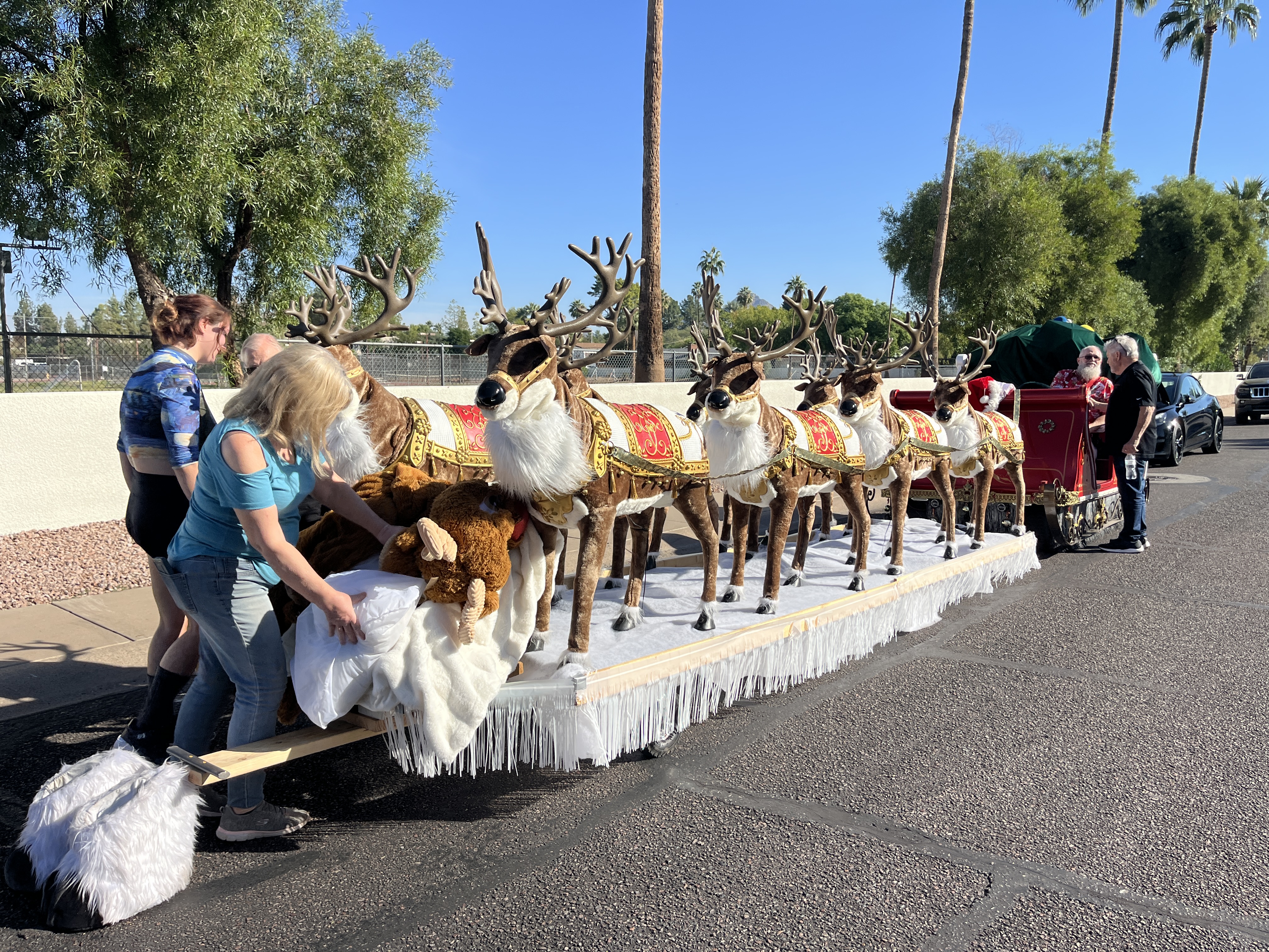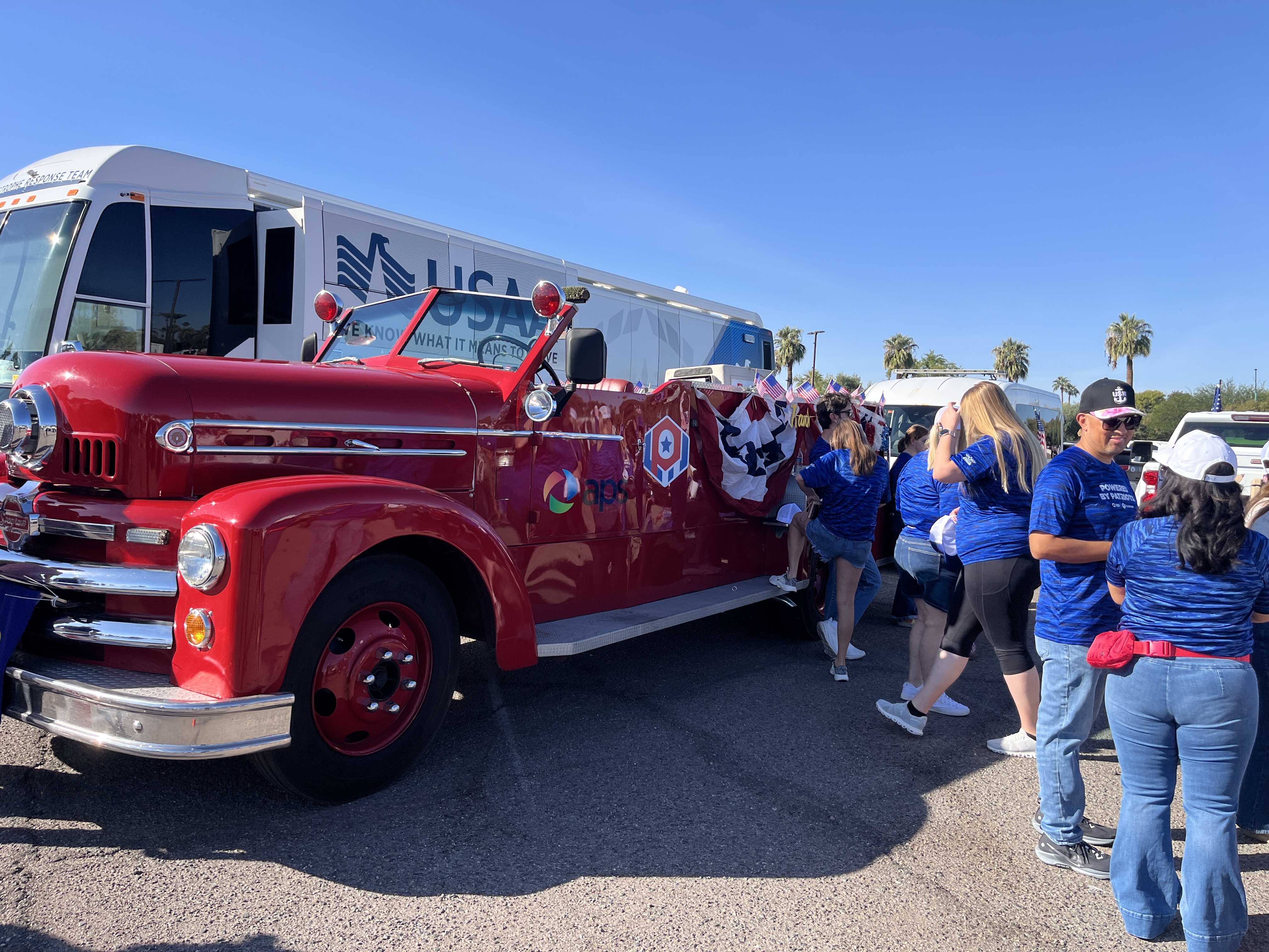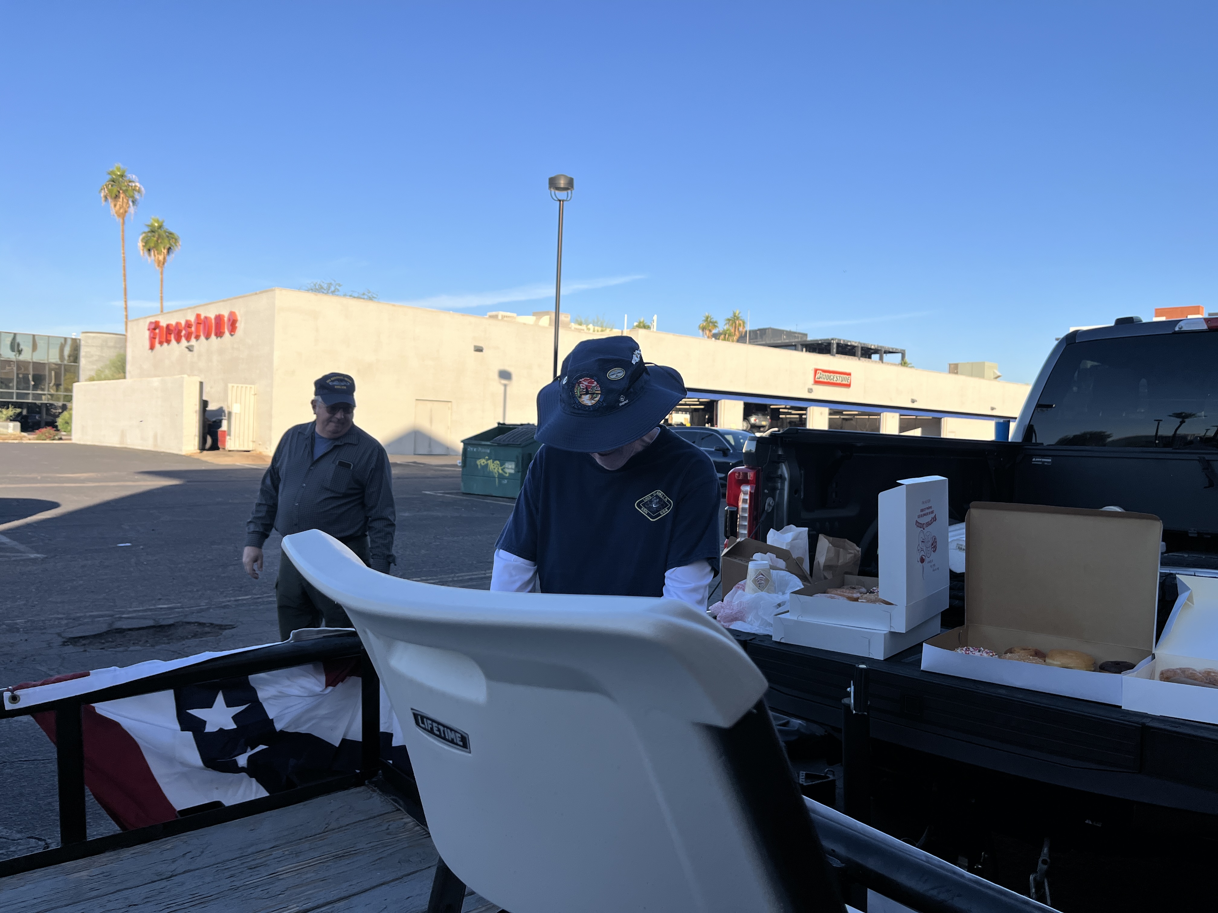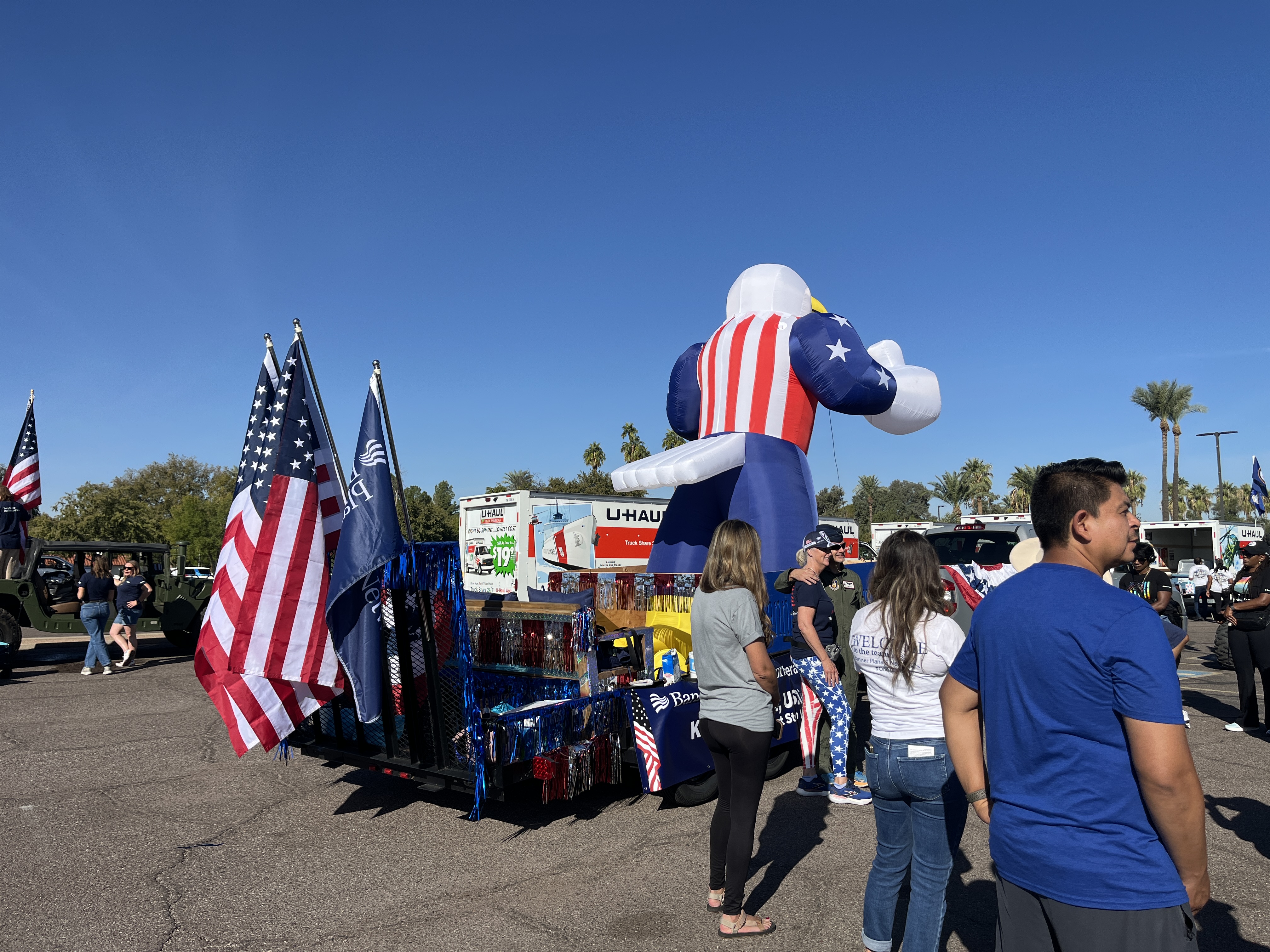 We met at 8 AM to stage the float at the Firestone Complete Auto Care at 241 W Osborn Rd. Thanks to Firestone for